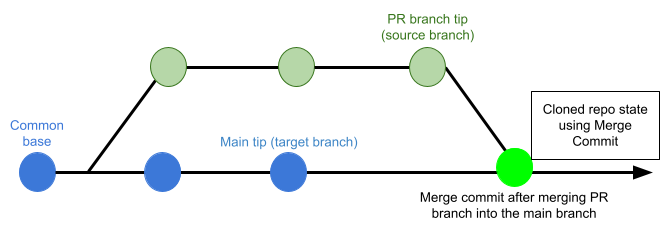 If this is set to Merge Commit (which is the default setting), the pipeline tries to merge the pull request branch with the target branch before building the artifact. This guarantees that the artifact includes all commits in both the pull request and the target branch. The disadvantage is that this can take more time and result in build failures: If the merge fails, then the build fails.