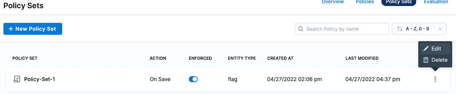 After you have created your Policy Set and added your policies to it, apply the policy to a Feature Flag.