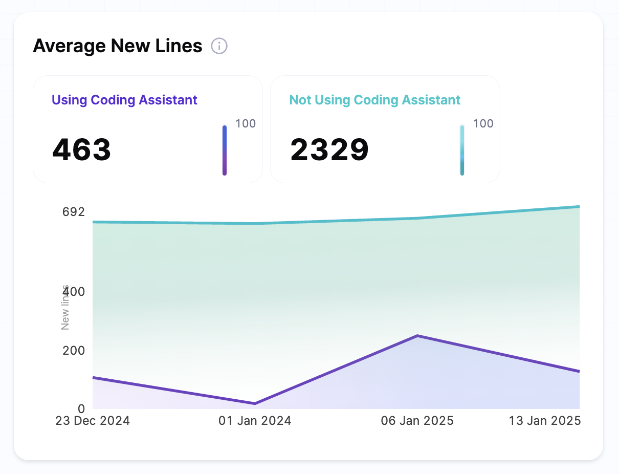 • If developers using AI code assistants have a higher average number of PRs per week, this suggests that AI-assisted coding helps improve developer efficiency.