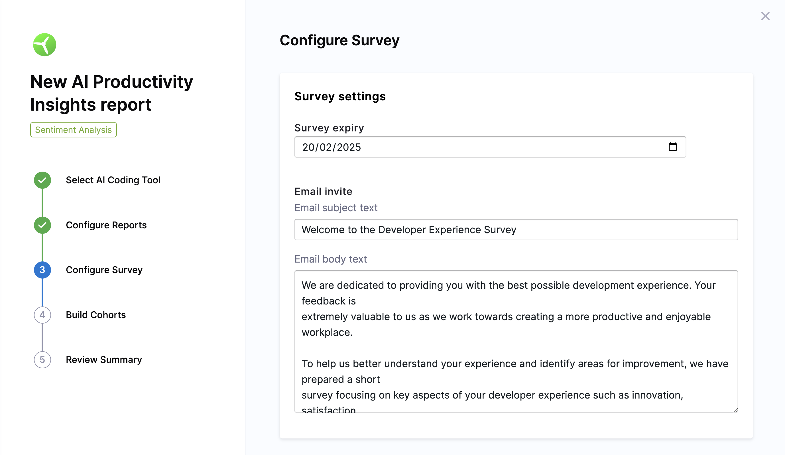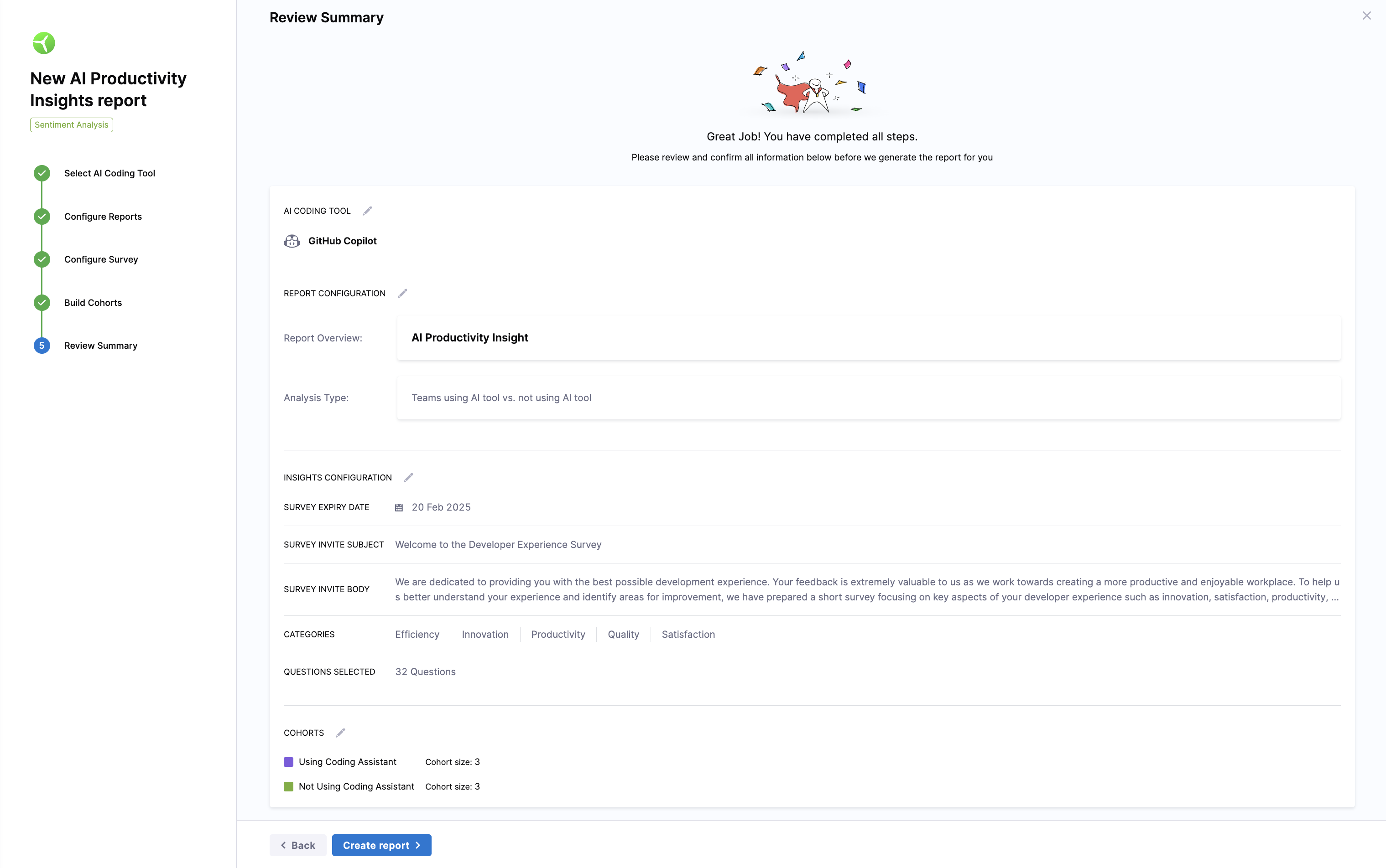 • Quick feedback loops: When you need to quickly assess how AI tools are impacting your developers' experience and performance.